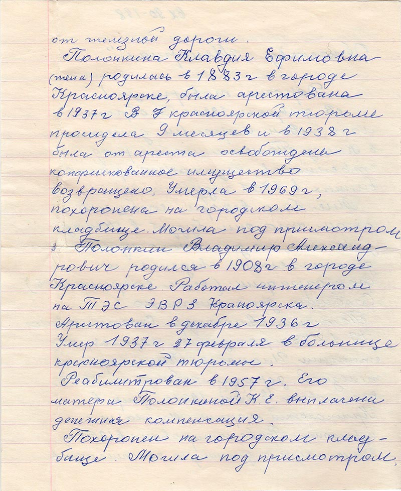 Полонкин Владимир Александрович, родился в 1908 г в городе Красноярске. Работал