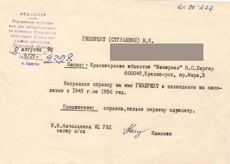 Письма в Красноярское общество "Мемориал"