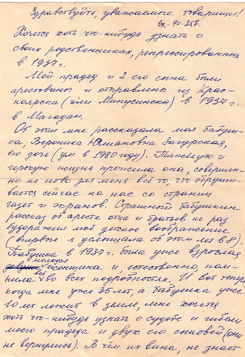 Хочется хоть что-нибудь узнать о своих родственниках, репрессированных в 1937г.