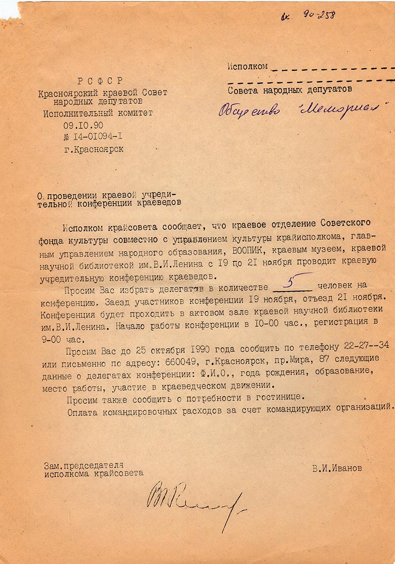 Письма в Красноярское общество "Мемориал"