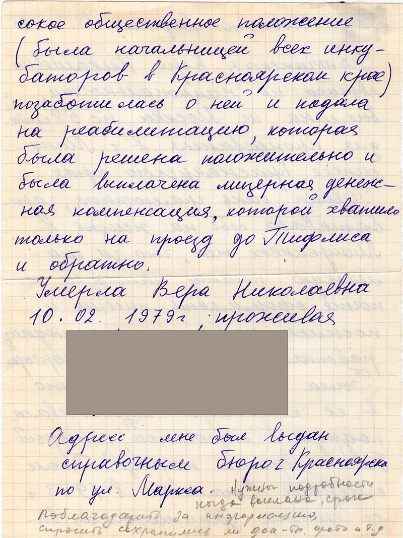 Адрес мне был выдан справочным бюро г. Красноярска по ул. Маркса