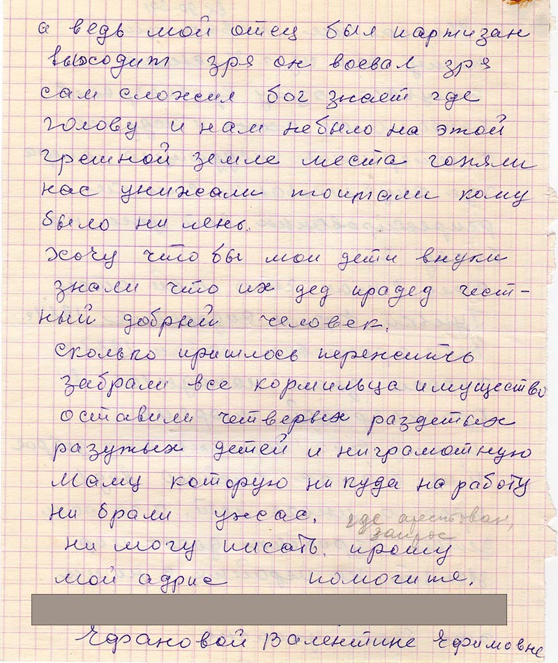 Прошу Вас вернуть ему доброе имя, а с нас клеймо ведь прошло много лет, а
