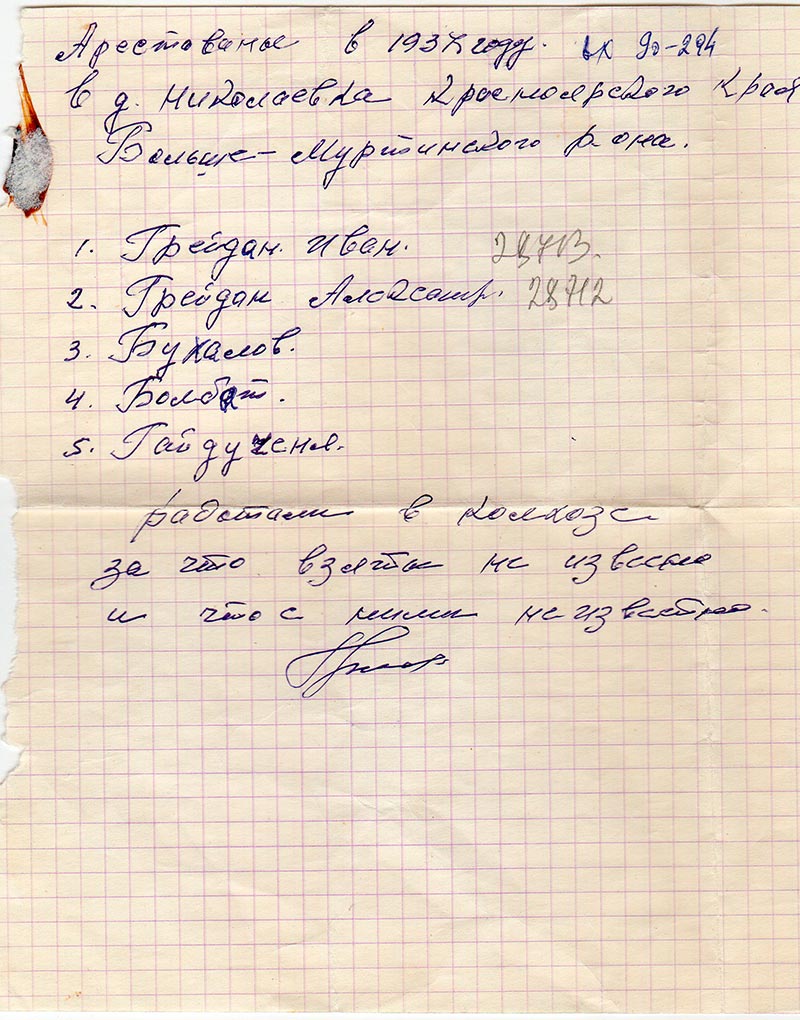 Арестованы в 1937 году в д.Николаевка Красноярского края Больше-Муртинского р-она.