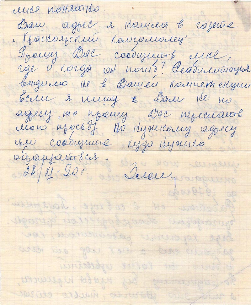 Ваш адрес я нашла в газете «Красноярский комсомолец».