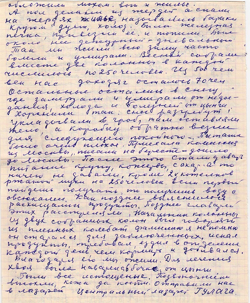 Питание было очень плохое. Приехала комиссия из Москвы, писали на бересте –
