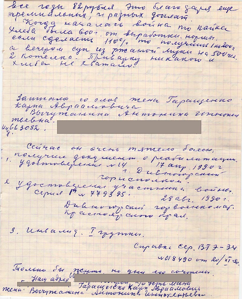 Наш адрес Красноярск ---адрес--- Гаращенко Карп Авраамович жена Вычужанина