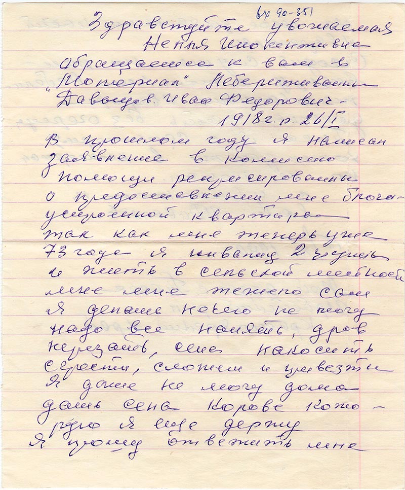 В прошлом году я написал заявление в комисию помощи реприсированны о предоставлении мне блогаустроенной квартира так как мне теперь уже 73 года я инвалид 2 группы и жить в сельской местности мне мне тежело сам я делать нечего не хочу надо все нанять, дров нерезать, еше накосить сгрести, сложит и привезти Я даже не могу дома дать сена корове которую я еще держу Я прошу ответить мне на мое заявление насчет квартиры.