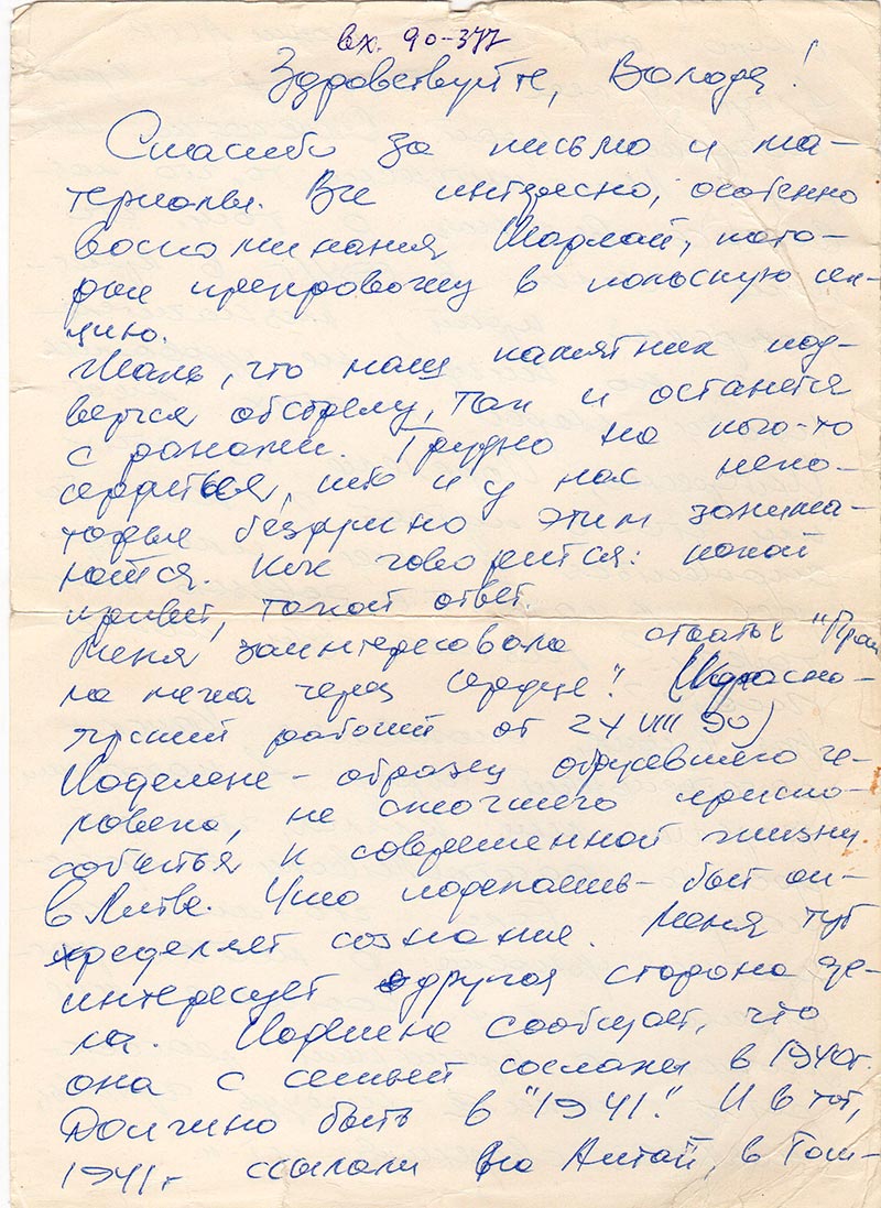 Спасибо за письмо и материалы. Все интересно, особенно воспоминания …, которые перевожу в польскую секцию.