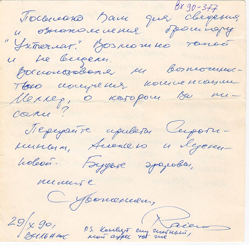 Посылаю Вам для сведения и ознакомления брошюру «Ухтпечлаг». Возможно, такой и не видели. Воспользовался ли возможностью получения компенсации, Меллер, о которой вы писали.