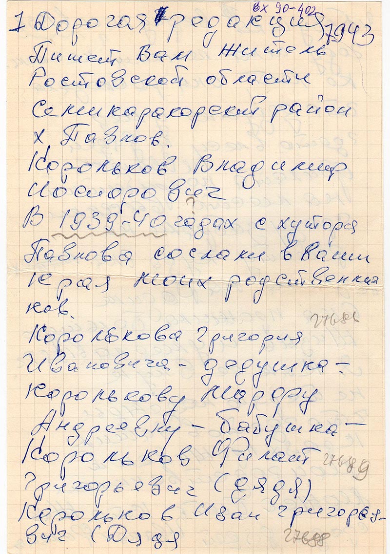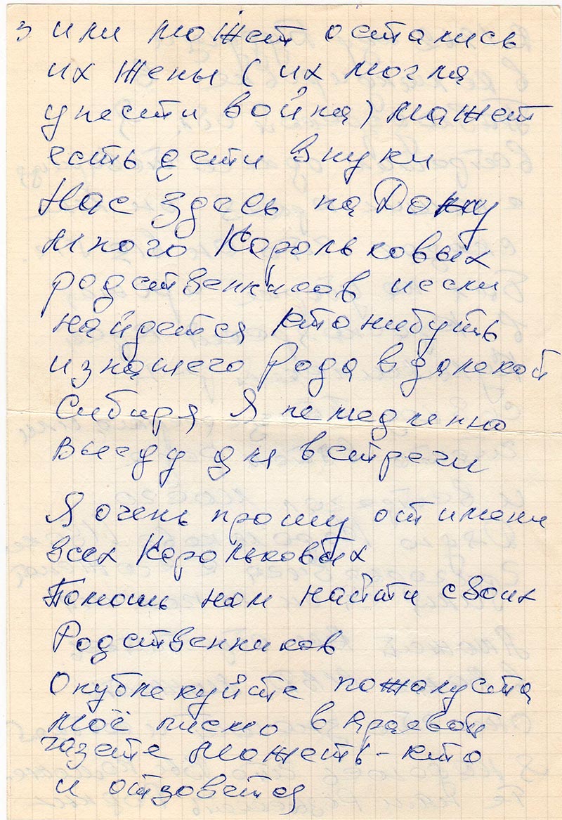 Нас здесь на Дону много Корольковых родственников и если найдется кто нибудь из нашего Рода в далекой Сибири я немедленно выеду для встречи