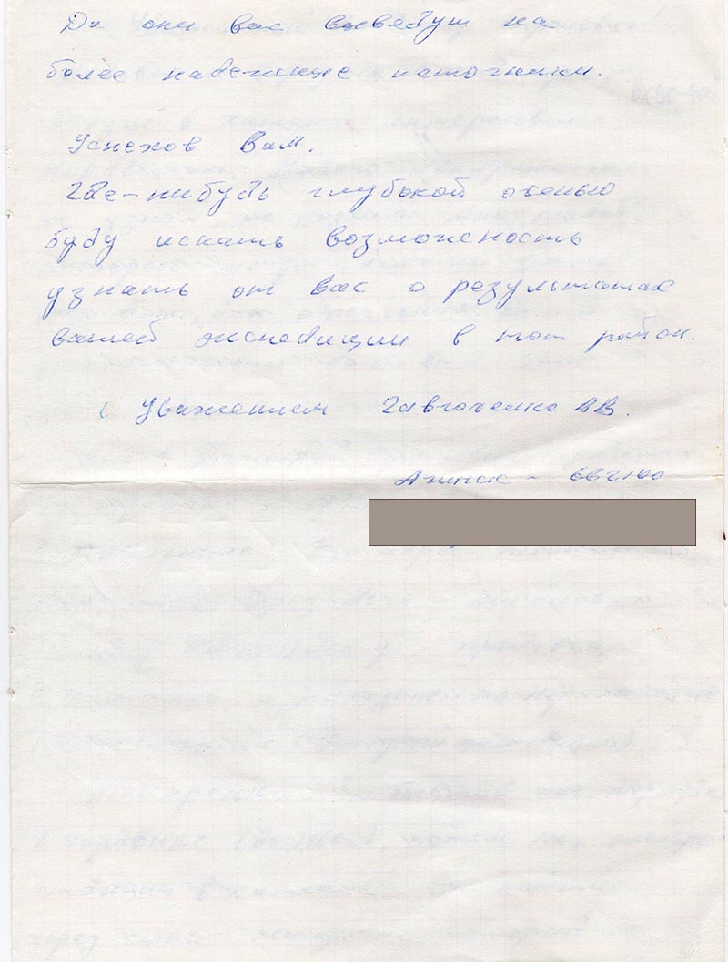 Где-нибудь глубокой осенью буду искать возможность узнать от вас о результатах вашей экспедиции в тот район.