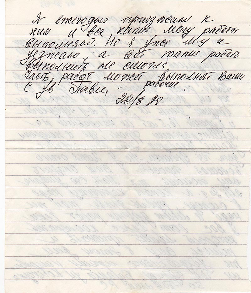 Обращаюсь к Вам с такой просьбой мой брат Павлюк Ростислав Сергеевич 1927 г. рожд Инвалид войны I гр. в 1943 год он добровольцем ушел в морфлот где обещали учить их, по 6 м-у проучили и будучи 16,5 лет их направили на Ленинградский фронт, где и получил увечие. Вообщем это репресивные дела тех времень. Но у меня очень большая просьба к Вам оказать ему помощь. т.к Мать его умерла 21/I 90 г. а копать картошку надо в огороде, рубать дрова так же надо и много других работ Если у Вас есть, адрес кооператив который может приехать и помочь ему в этом деле то убедительно прошу направит их по адресу.