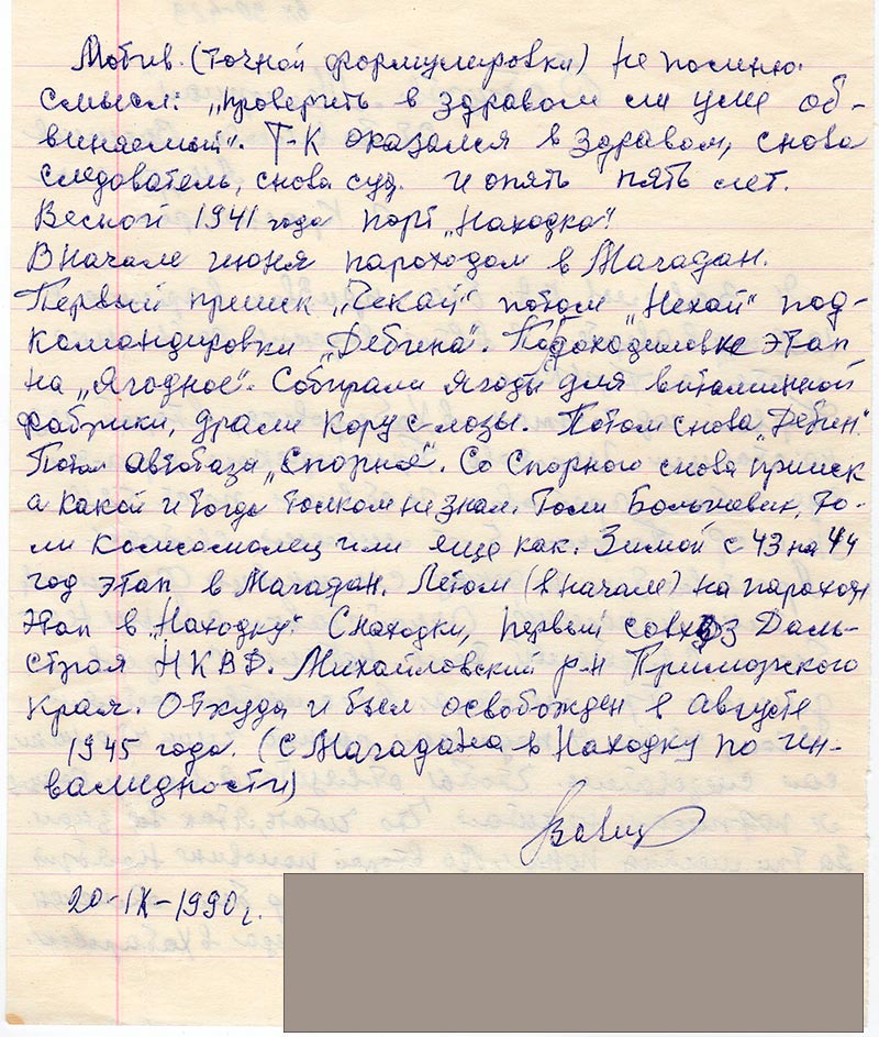 Большевик, толи Комсомолец или ещё как. Зимой с 43 на 44 год этап в Магадан.