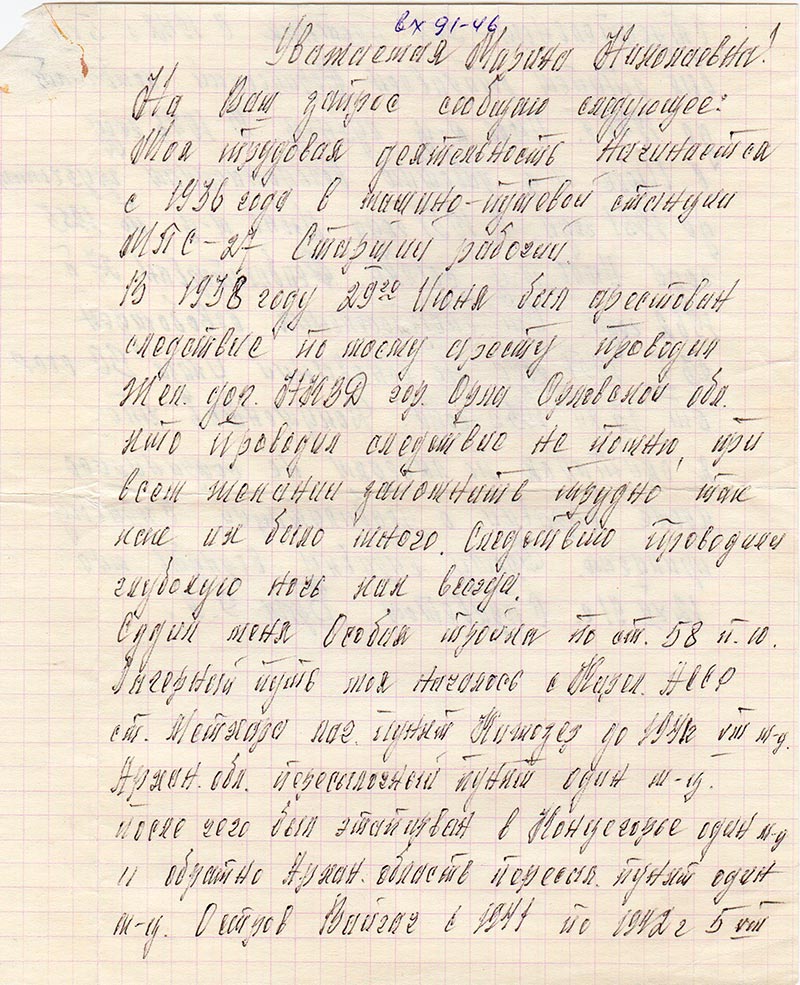 На Ваш запрос сообщаю следующее: моя трудовая деятельность начинается с 1936 года в машино-путевой станции МПС-27 старший рабочий.
