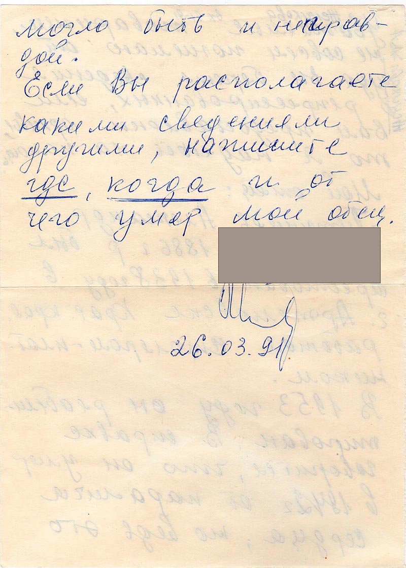 Если вы располагаете какими сведениями другими, напишите где, когда и от чего умер мой отец
