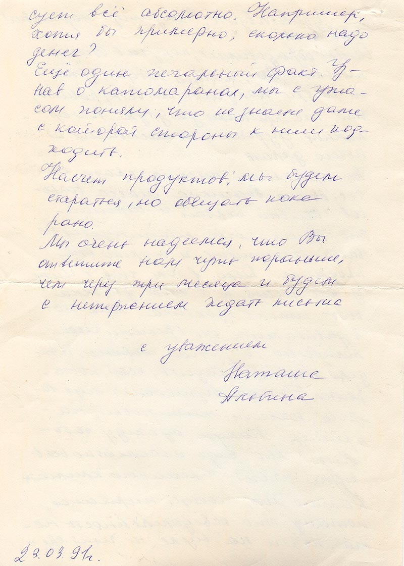 Мы очень надеемся, что Вы ответите нам чуть раньше, чем через три месяца и будем с нетерпением ждать письма.