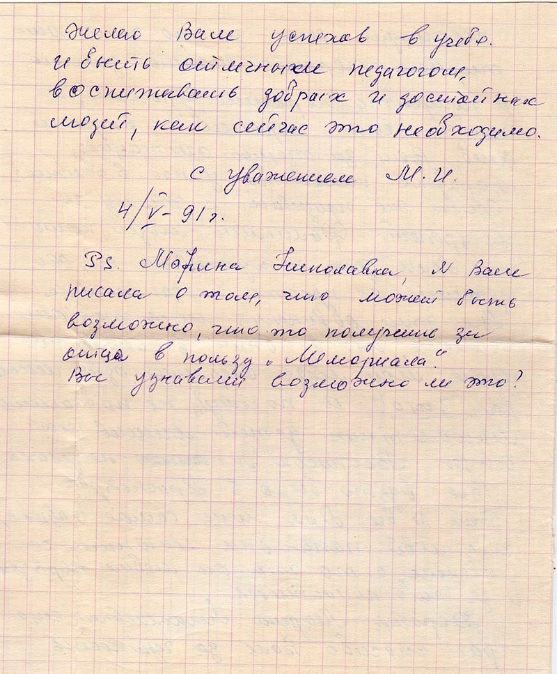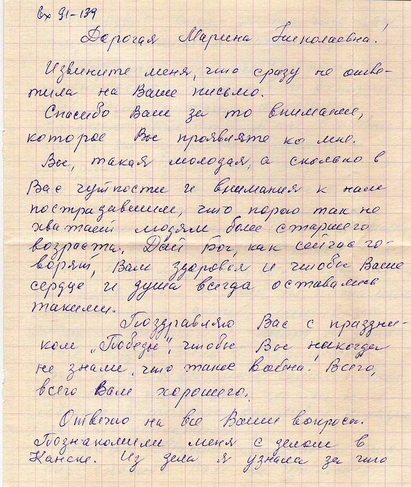 PS. Марина Николаевна, я Вам писала о том, что может быть возможно, что то получить за отца в пользу «Мемориала». Вы узнавали, возможно ли это?