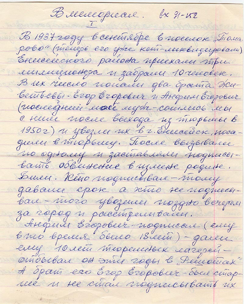 – сошлись мы с ним после выхода из тюрьмы в 1950 г) и увезли их в г. Енисейск,
