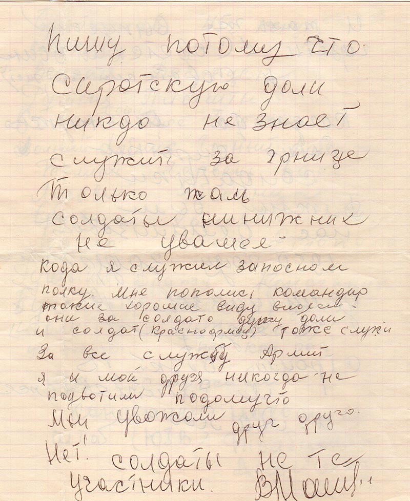 Пишу потому что сиротскуюдоли никдо не знает служит за границе только жаль солдаты нинижних не уважел.