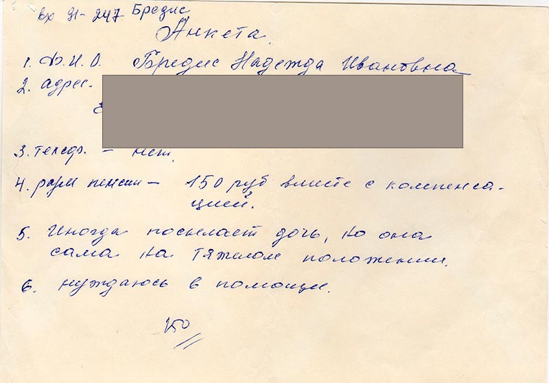 5. Иногда посылает дочь, но она сама на тяжелом положении.