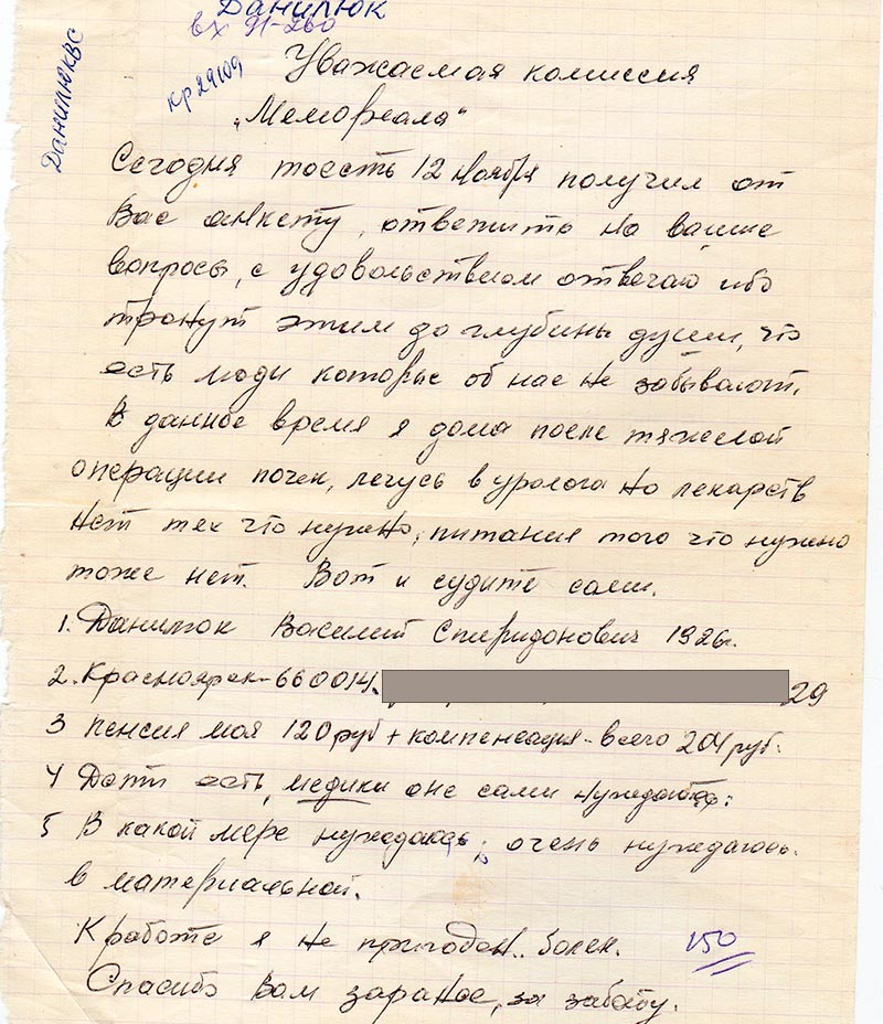 150 (речь идёт сумме помощи от "Мемориала")