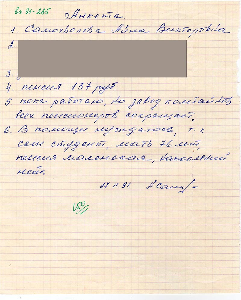 6. В помощи нуждаюсь, т.к. сын студент, мать 76 лет, пенсия маленькая,