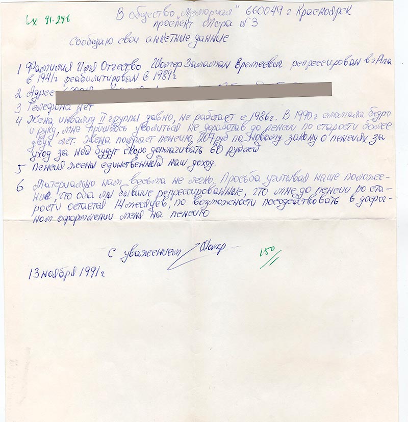 (после реабилитации мне восстановили имя, отчество, данное мне покойными