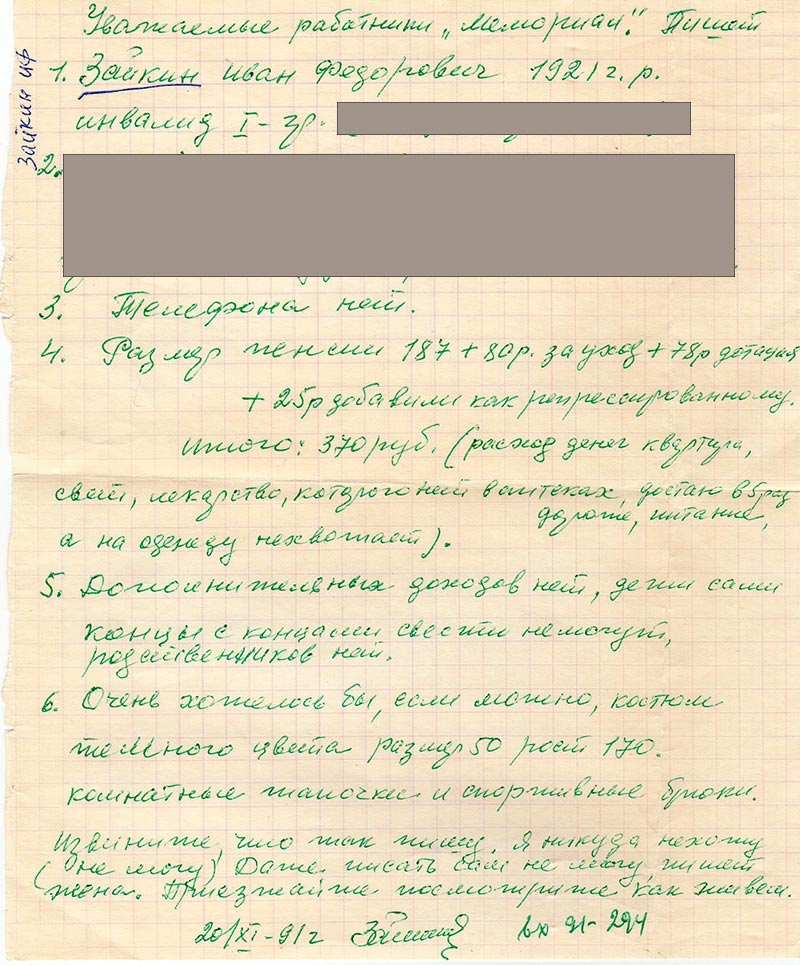 репрессированному. Итого 370 руб. (расход денег квартира, свет, лекарство,