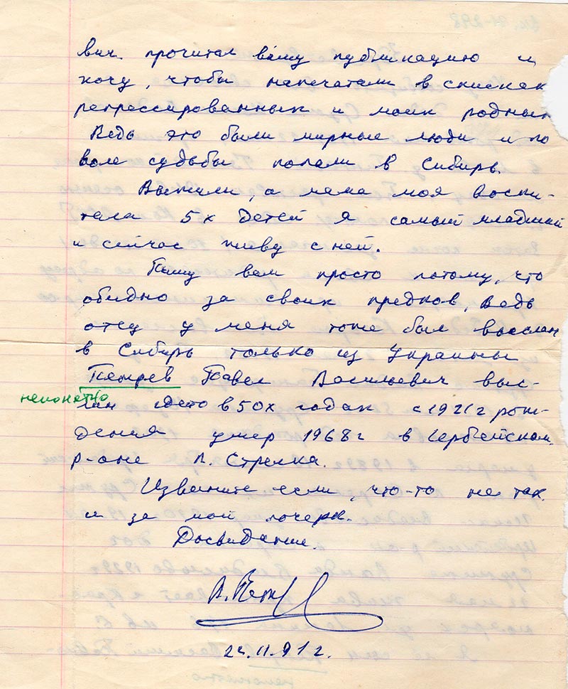Пишу вам просто потому, что обидно за своих предков. Ведь отец у меня тоже был выслан в Сибирь только из Украины Петров Павел Васильевич выслан гдето в 50-х годах с 1921 г. рождения умер в 1968 г. в Ирбейском р-оне п. Стрелка.