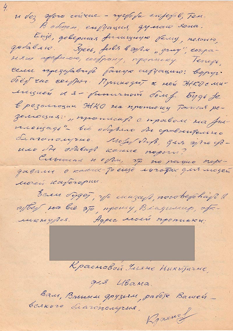 Пишет Вам из Шушенского Краснов Иван Никитич. Получил я письмо от брата из Минусинска. Он писал Вам и выслал мне копию Вашего ответа. И настаивал, чтоб я написал.