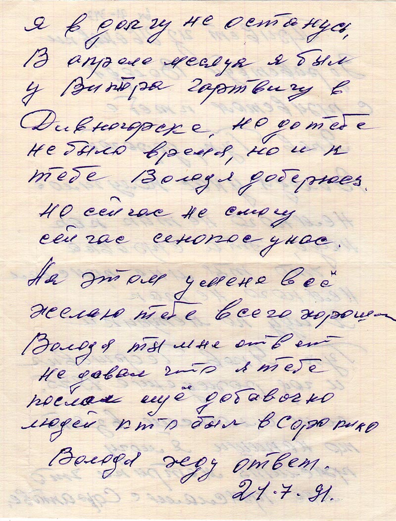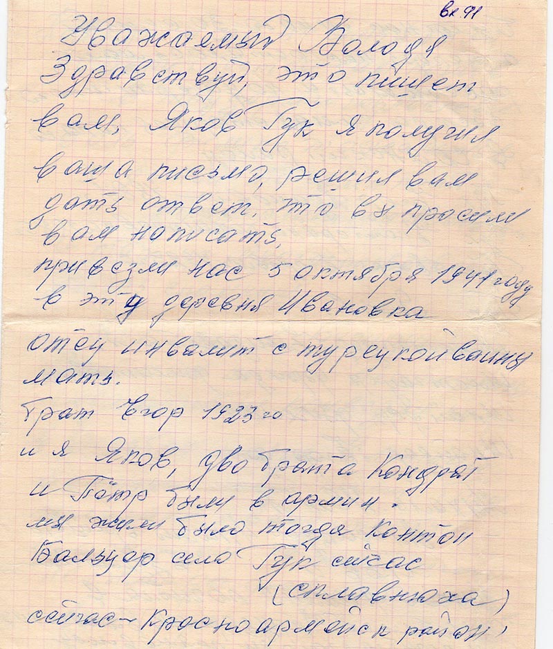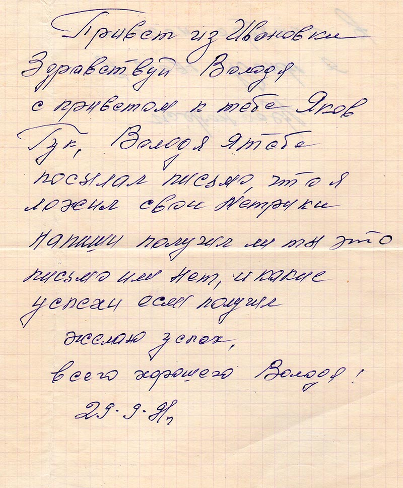 Здравствуй Володя с приветом к тебе Яков Гук, Володя получил я твоего письмо, и