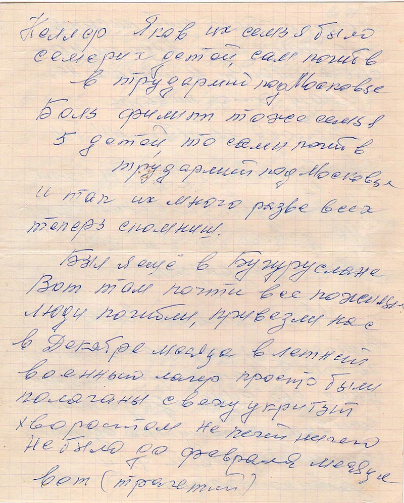 Вот там почти все пожилые люди погибли, привезли нас в Декабре месяце в летний