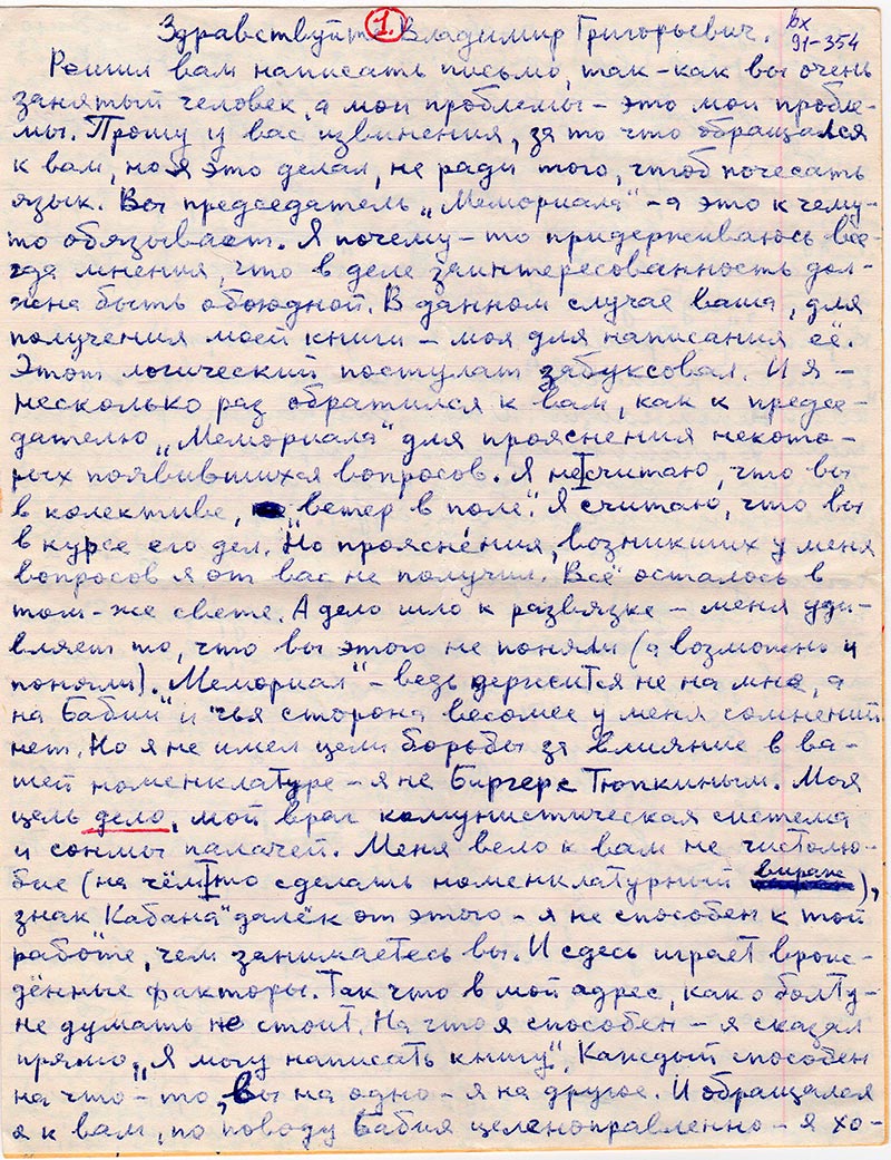 несколько раз обратился к вам, как к председателю «Мемориала» для прояснения