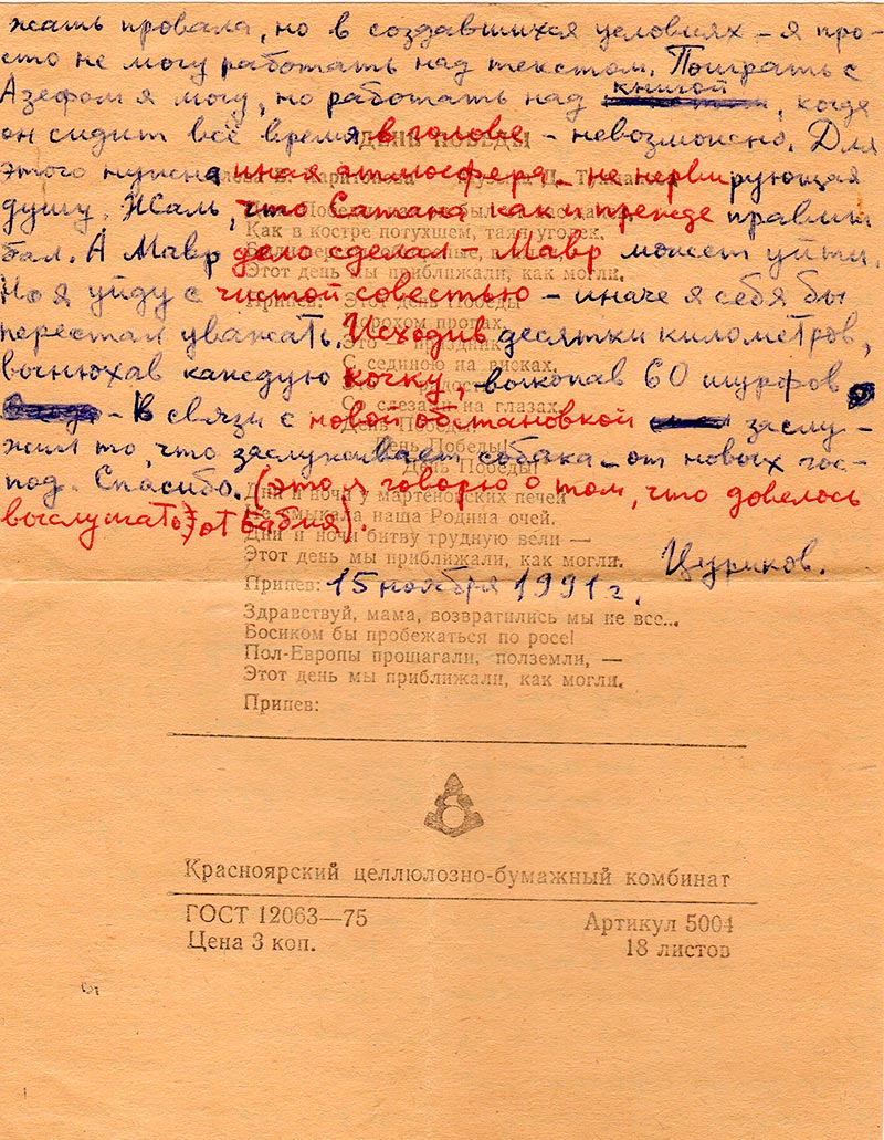 создавшихся условиях – я просто не могу работать над текстом. Поиграть с Азефом