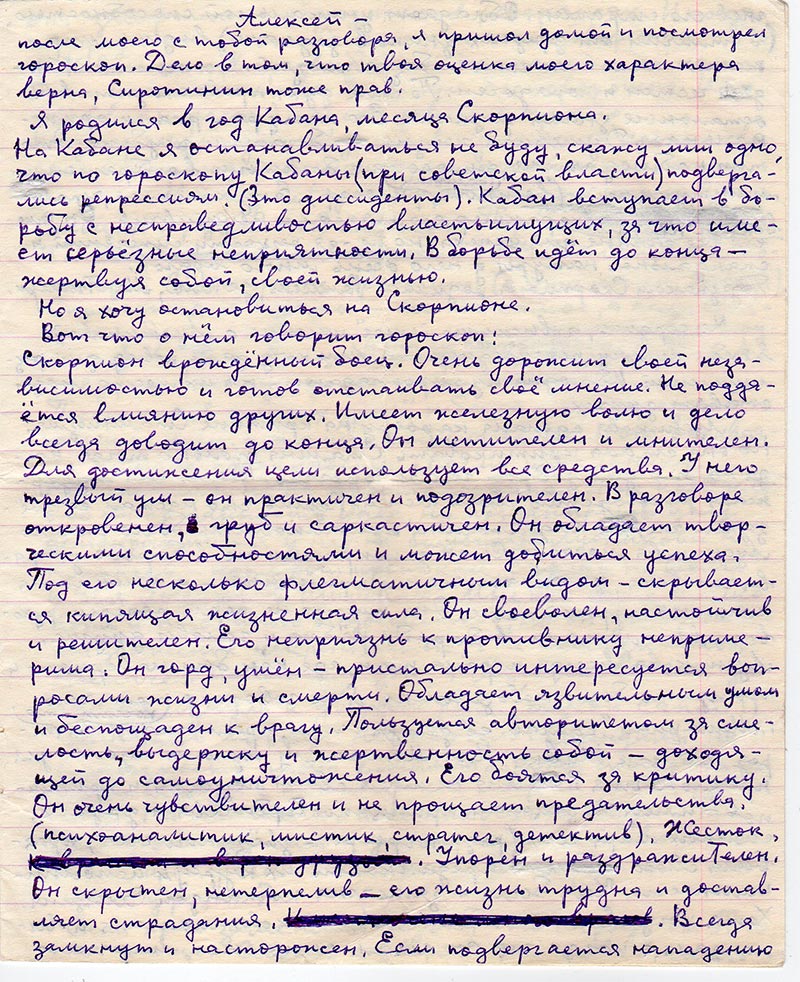 после моего с тобой разговора, я пришол домой и посмотрел гороскоп. Дело в том, что твоя оценка моего характера верна, Сиротинин тоже прав.