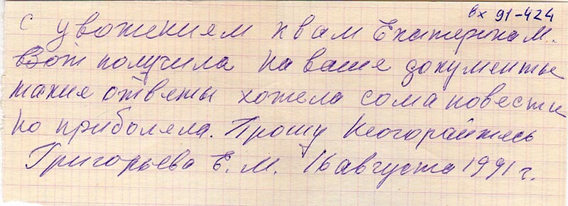 Григорьева Е.М. 16 августа 1991г.