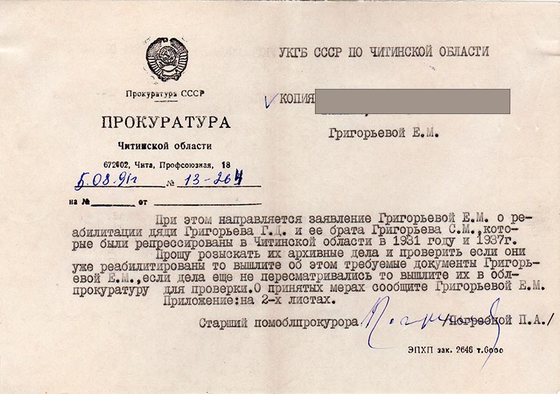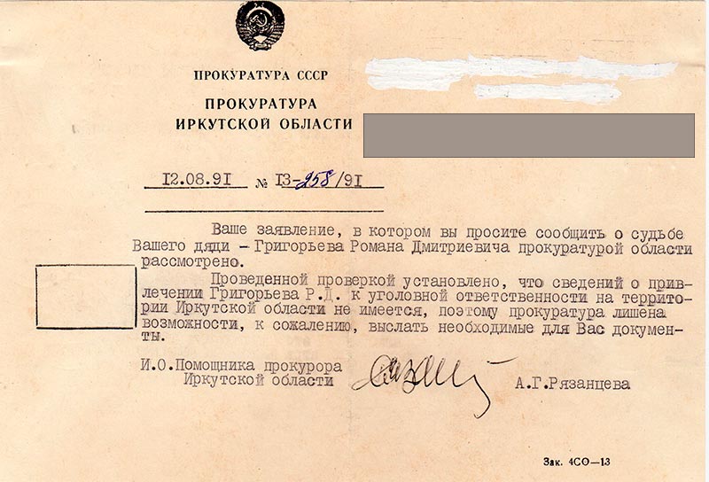 Письма в Красноярское общество "Мемориал"