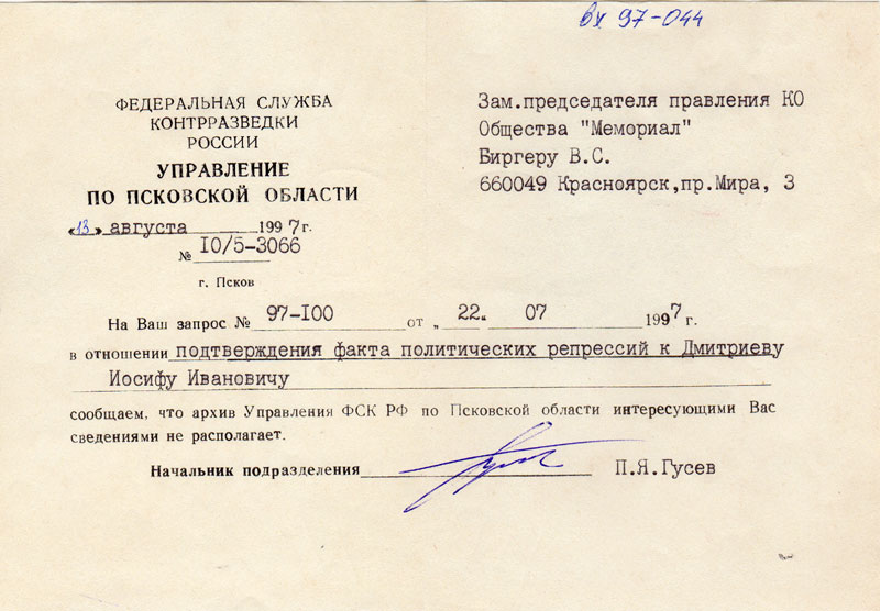 Письма в Красноярское общество "Мемориал"
