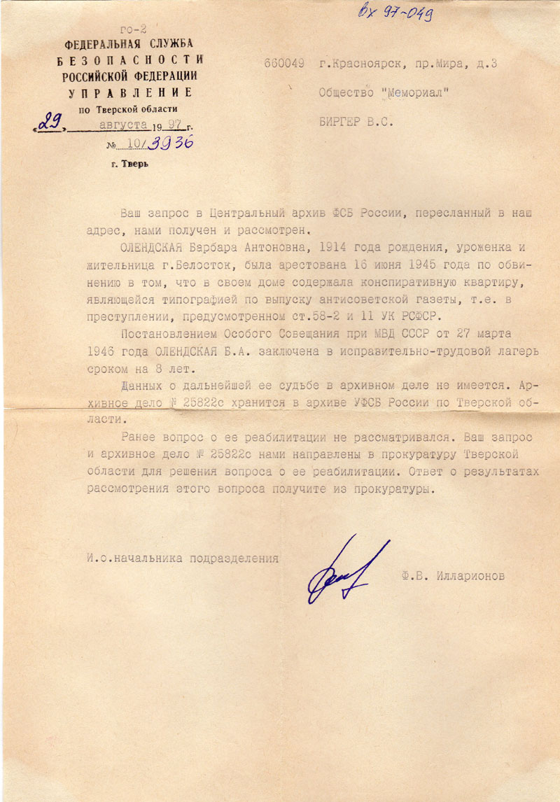 Письма в Красноярское общество "Мемориал"
