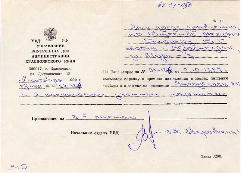 Письма в Красноярское общество "Мемориал"