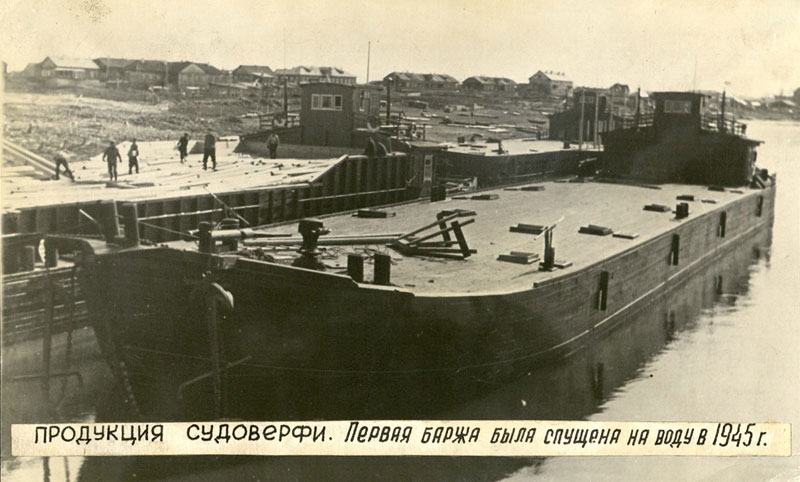 В 1945 г. была спущена готовая 1000-тонная баржа и сдана в эксплуатацию Енисейскому пароходству. Позже строились 2000-тонные лесовозы, 2-х палубные дебаркадеры и брусчатые стандартные дома и другая продукция.