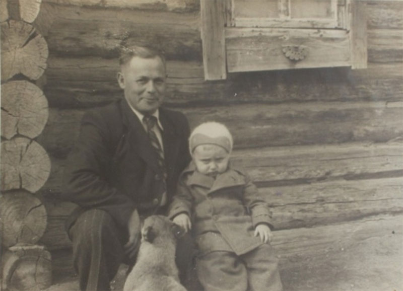 Григорий Эрлихсон с сыном Мариком во дворе своего дома,