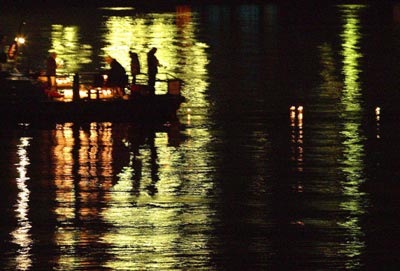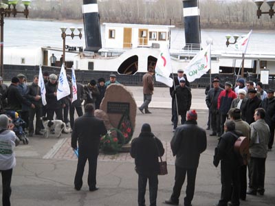 В 18 часов у закладного камня памяти жертв политических репрессий состоялся траурный митинг, а затем - торжественный спуск траурной гирлянды и поминальных свечей по Енисею.