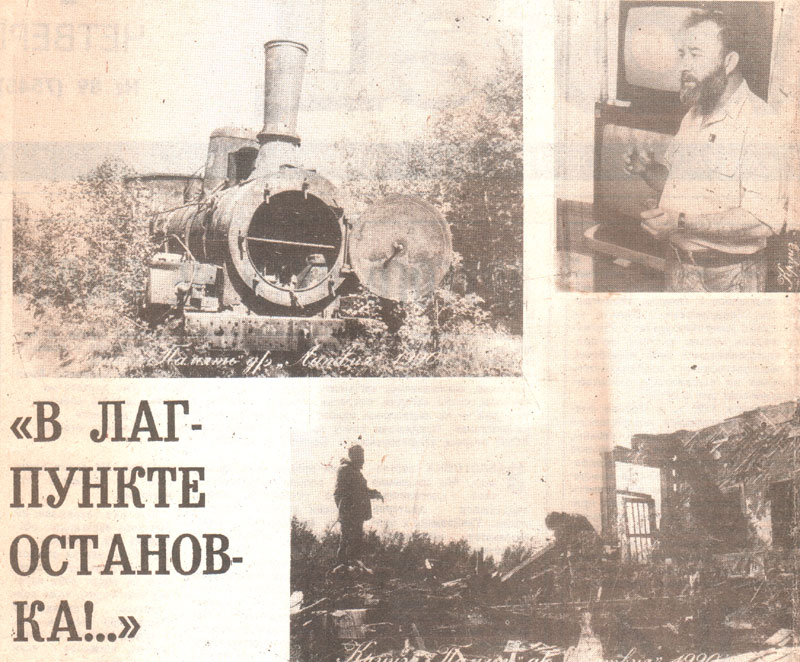 Дудинка, Норильск, Усть-Порт, Ярцево. Енисейск— повсюду узнавали мы много нового, листая страшные и трагичные страницы прошлого. Особый отпечаток оставила в памяти стоянка в Ермакове, одном из узловых объектов стройки № 503, железной дороги — Салехард — Игарка, «сталинки», как ее называли в народе. Рассчитанный на 25 тысяч жителей — охранников, вольнонаемных, спецпоселенцев, —- поселок фактически уже не существует — одни развалины, хоть и видно, что строили основательно, на многие десятилетия. Самое страшное — дальше — по насыпи, с которой уже сняли рельсы, . в тайге. Через каждые 6—10 километров—лагерные пункты. Своими глазами увидели развалившийся карцер с дверями, обитыми железом, с глазками и запорами, покосившиеся вышки, ржавые ручные тачки и опрокинутые паровозы. Каждому дню круиза «Память» мы посвящали очередной выпуск стенгазеты. «Ермаковский» выпуск назвали: «Наш паровоз вперед летит, в лагпункте остановка...»