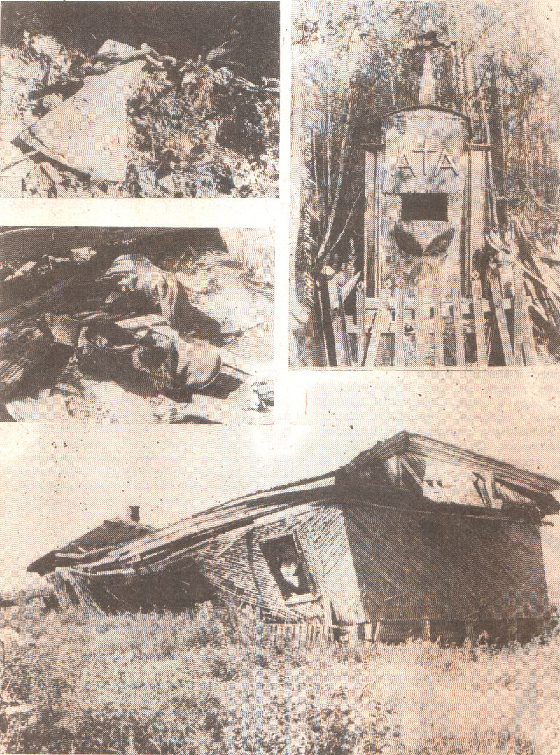 НА СНИМКАХ: кресты литовского кладбища под Игаркой; В. Г. Сиротинин — председатель Красноярского общества «Мемориал»; на месте стройки № 503 остались только развалины да разбитые паровозы, впрочем, можно обнаружить орудия труда и быта заключенных.