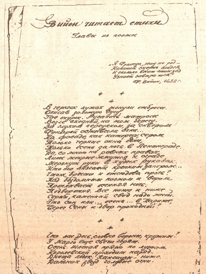 НА СНИМКЕ: фрагмент рукописи стихов Анатолия Клещенко, которые войдут в сборник «Вийон читает стихи».