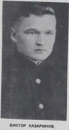 В начале навигации, 23 мая, когда пароход стоял у пристани Минусинск, Д. В. Казаринов ушёл на склад, а первый помощник механика стал прогревать машину. В это время произошла поломка клапана парораспределения. Через два часа клапан был заменён. У него была старая трещина и скрытая литейная раковина, но всё же Дмитрия Васильевича арестовали. Был арестован и первый помощник механика Сергей Бакулин. Они были осуждены как «враги народа» по статье 58.