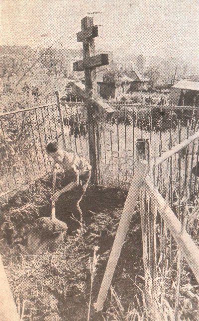 Заступ глухо стучит обо что-то деревянное: старые гробы делались из хорошего материала. «Нашел гроб!» — громко восклицает молодой человек. Очевидцы происходящего — редкие родственники покойных — волнуются и утирают накатившие слезы. Зеваки-дачники терпеливо ждут, когда из ямы начнут доставать «самое интересное»: «Ну че, черепуху-то видать?» Древний старичок с костыльком показывает кладбищенскому начальству место, где была могила его брата, которая не зафиксирована на официальной карте. Вера Леонидовна Мазурова — женщина преклонных лет — говорит, что ее отец, Леонид Коноплев, бывший директор школы № 6, умер 1 сентября 1932 года. Переволновался да еще и болел — вот и... Пенсионерка Регина Ивановна рассказывает мне, что совсем не против переноса мощей своего покойного дядюшки. Еще 20 лет назад ее мать, умирая, просила перезахоронить родного брата рядом с ней. Кстати, за перенос могил платит мэрия. Перезахоронение одного праха обойдется бюджету в 1000 рублей. Останки каждого должны укладываться в отдельный гроб и увозиться отдельным рейсом катафалка. Короче, как «в первый раз»...
