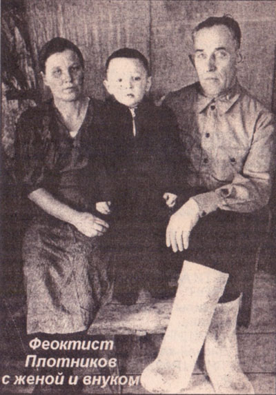 Феоктиста Григоьевича нужно отметить и как примерного семьянина. Люди знали и уважали его детей: дочь Клавдию (ныне покойную), сына Алексея - мастера стройотдела Курбатовского совхоза, а зате прораба Игрышенского совхоза, сына Феоктиста, который пошел по стопам отца и стал врачом, дочь Тамару (сейчас живёт в Абакане) и сына Михаила (воевал в Отечественную, гонялся за местными "братьями" в Литве). Михаил сейчас живёт в Курбатово, не по годам энергичный, вместе с женой ведёт большое хозяйство. Феоктист Плотников вырастил детей и дал им хорошее воспитание. Курбатовцы помнят их всех, а отца-врача вспоминают с особой благодарностью.