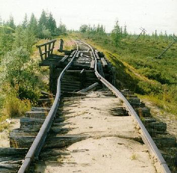В декабре 1946 года на заседании политбюро ЦК ВКП(б) Сталин поставил вопрос о постройке в короткий срок железной дороги, которая соединила бы Урал, Печорский бассейн и Восточную Сибирь с портами на севере Красноярского края. Первый этап - строительство магистрали Салехард - Игарка протяженностью 1263 км начался весной 1947 года. Игарка должна была стать "северным" Владивостоком. Именно от нее пошли бы ответвления на Норильск, Якутск и Дальний Восток. Согласно проекту "Главных направлений экономического и социального развития СССР на перспективу до 1960 года" их ввод в эксплуатацию планировался в конце 50-х годов. Всего на трассе Салехард - Игарка намечалось построить 28 станций и 106 разъездов. Железнодорожные паромы для сообщения через Обь, Енисей и Берингов пролив были заказаны в Швеции, Финляндии, Австрии и Восточной Германии. Основной контингент строителей (80%) поставлял, естественно, ГУЛАГ. До 1953 года было проложено 900 км трассы, построено 3 моста с железобетонными опорами. После кончины (убийства?) Сталина в конце марта 1953-го Совмин постановил "заморозить" строительство магистрали до особого распоряжения. Но его так и не последовало.